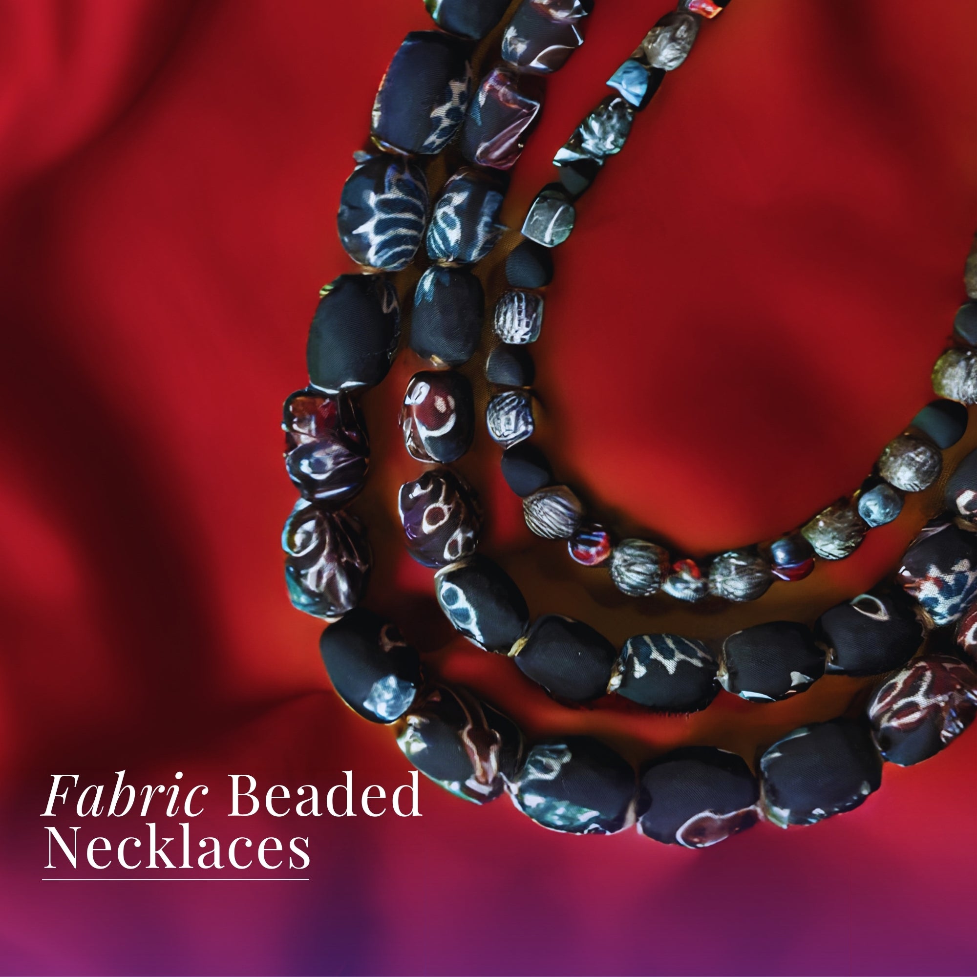 3 layer fabric beaded necklace in ajrakh & bandhni