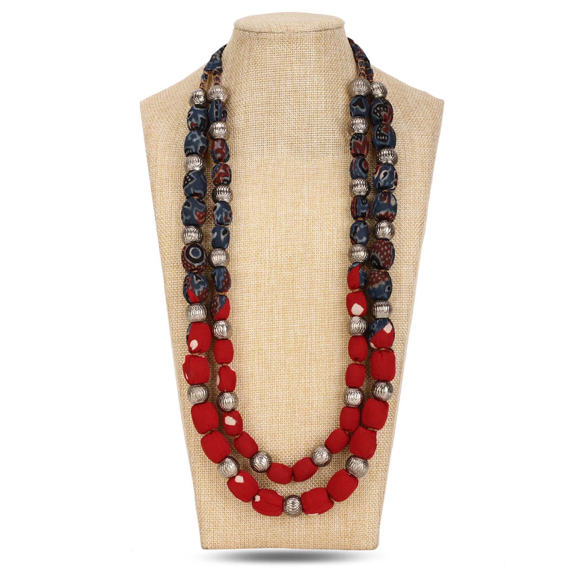 2 layer fabric beaded necklace in ajrakh & bandhni