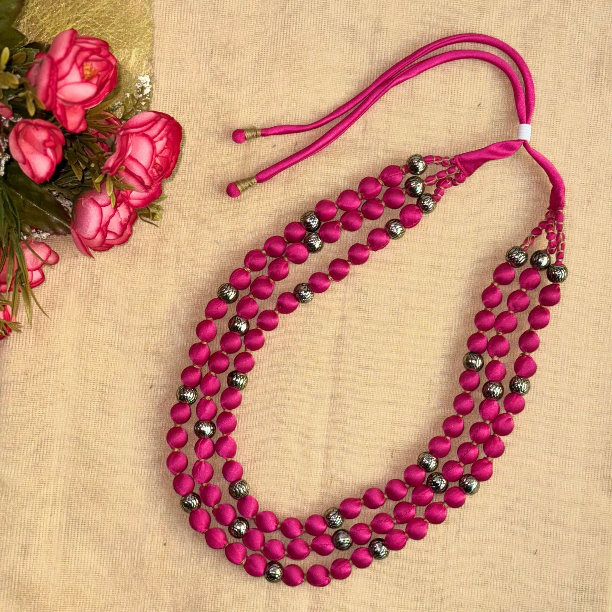 3 Layer Fabric Beaded Necklace in satin