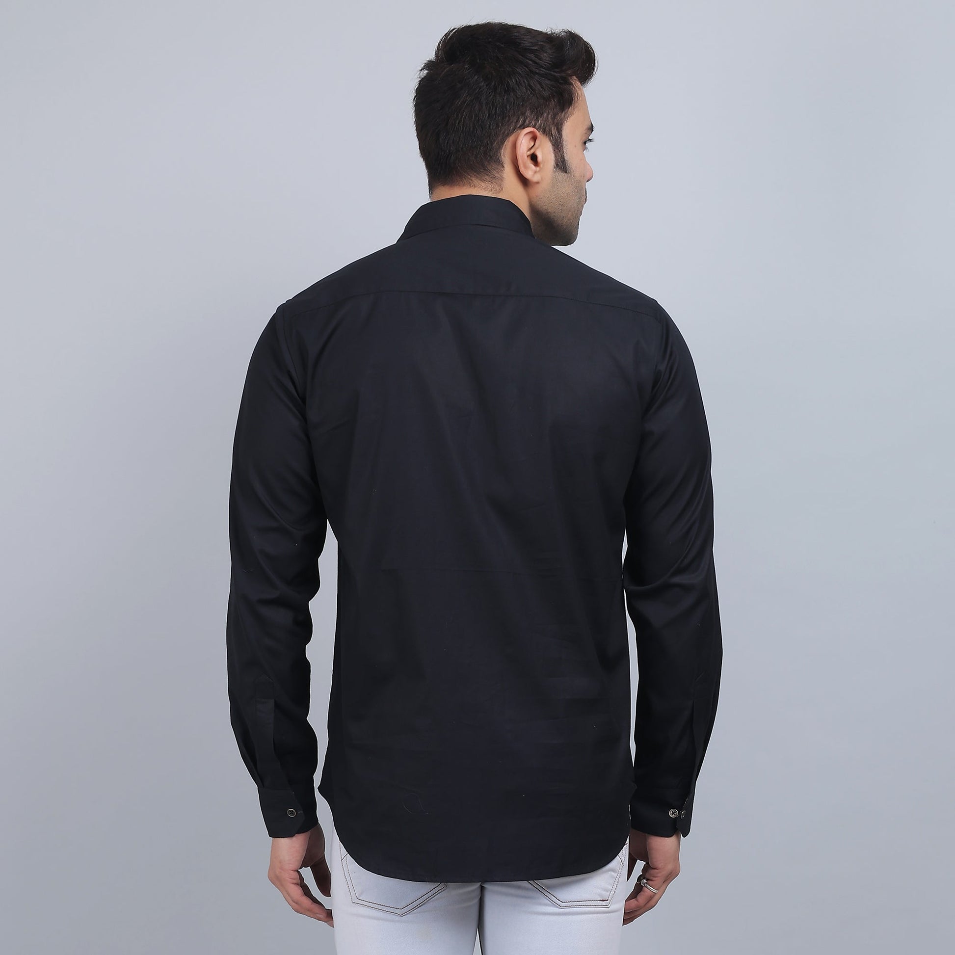 Black solid smart casual pure cotton Full-sleeves regular collar shirt in comfort fit. Ideal for social gatherings and for keeping comfort with a professional trendy appearance.