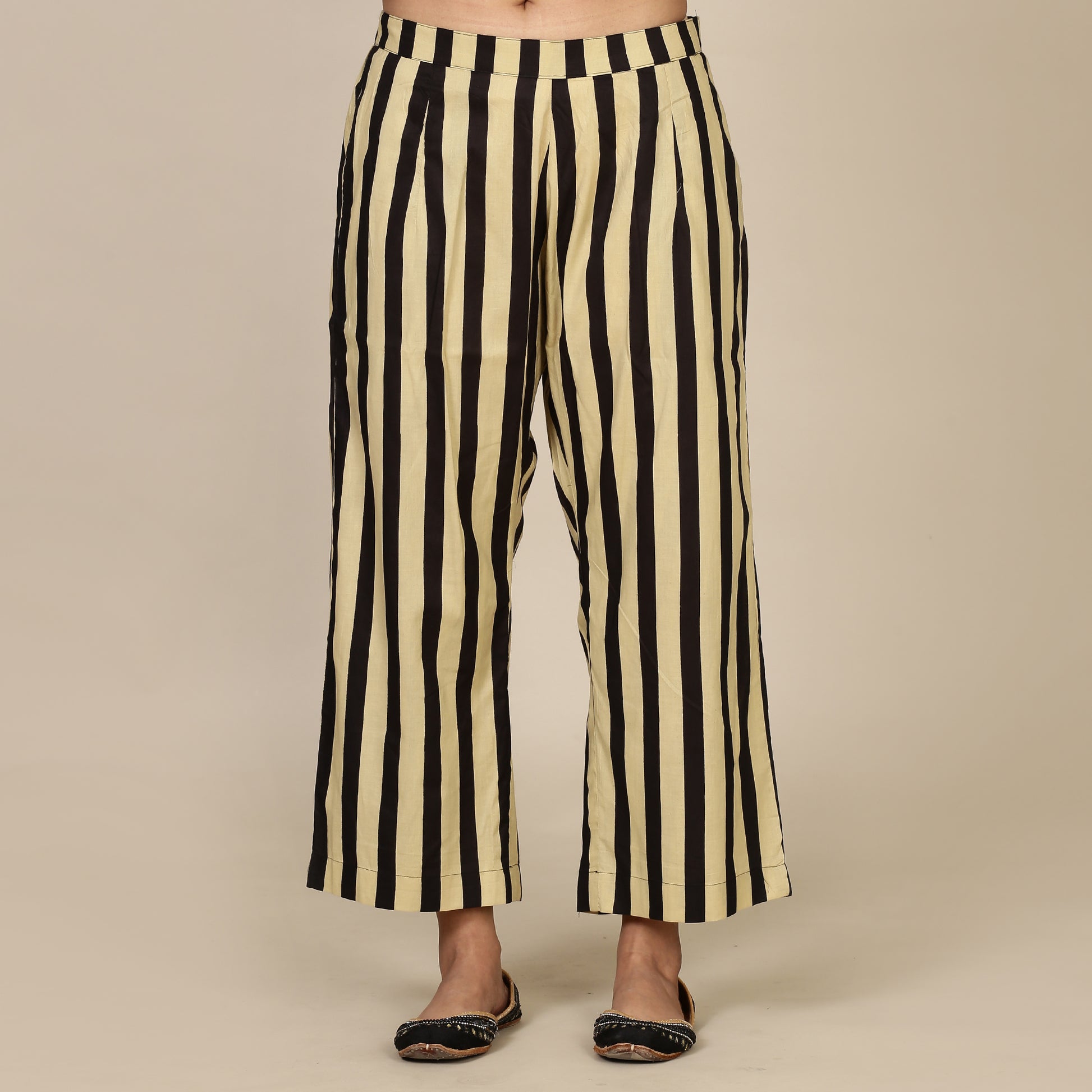 Black paisley cotton set with striped pants