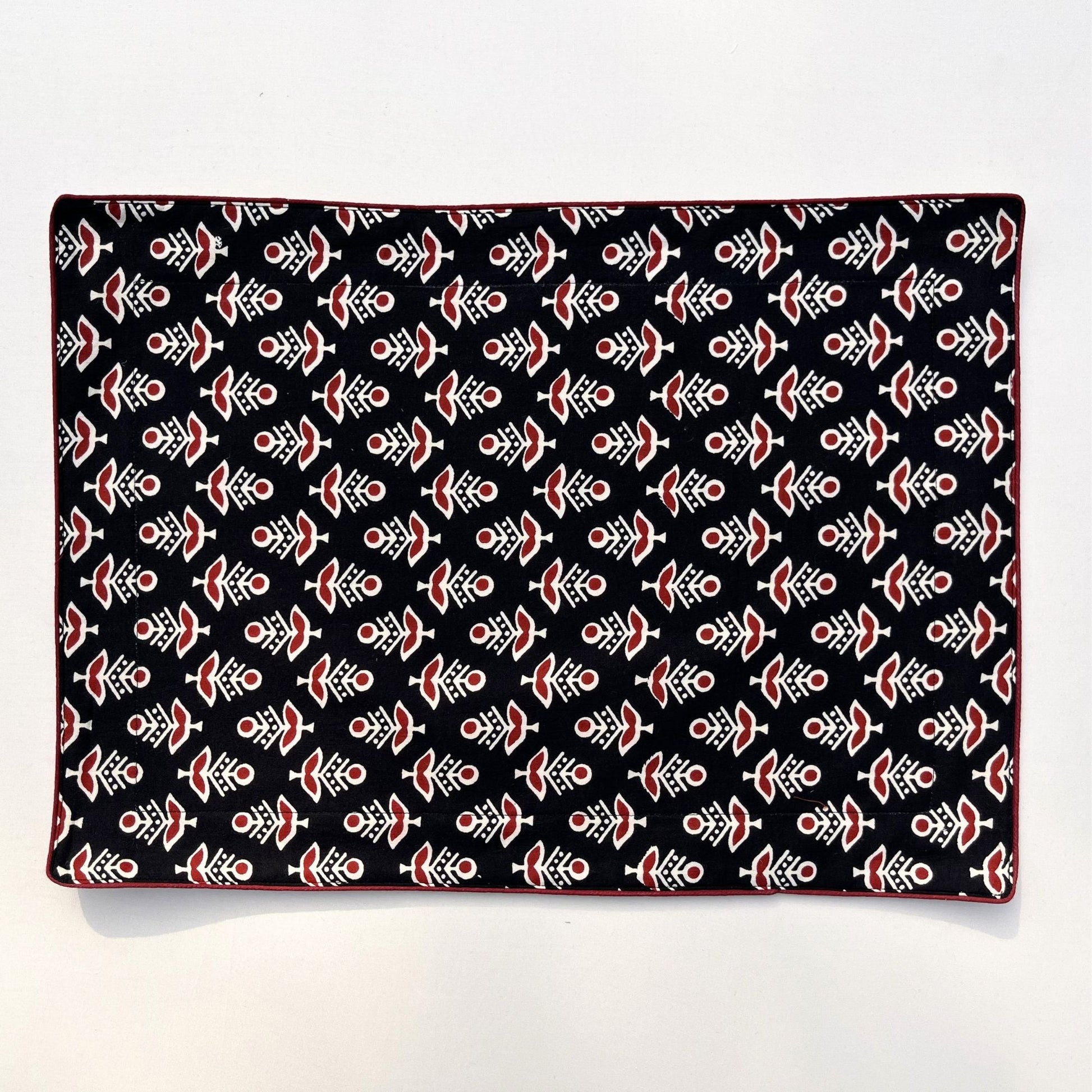 Black printed tea cosy set. The set comes with 1 tray mat, 1 tea cosy and 4 coasters. Elevate your tea experience with this visually appealing set made from fine cotton fabrics with a perfect blend of style and sustainability.