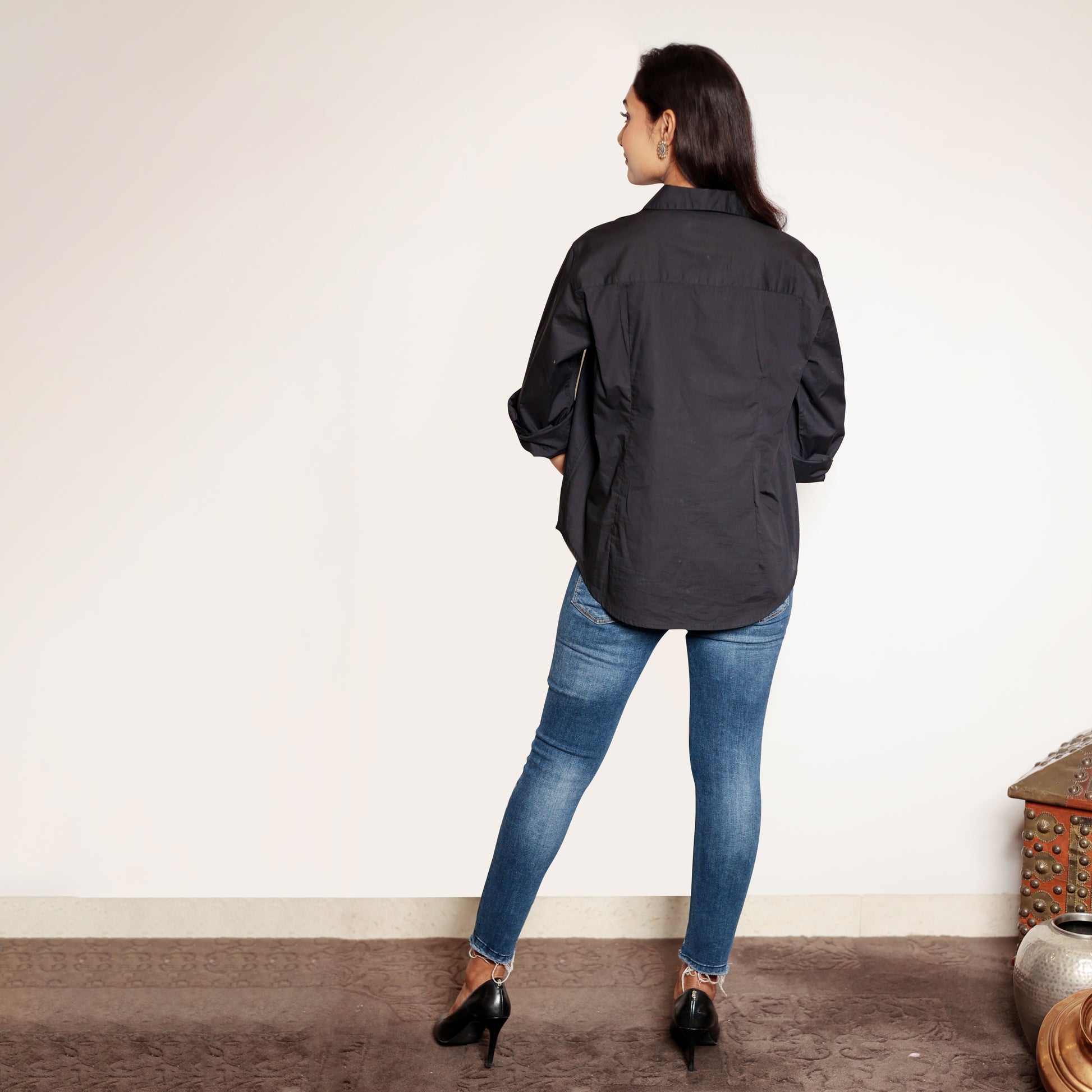 Dress up or down with this versatile black shirt. The subtle honeycomb embroidery on the pocket adds a unique touch that complements both casual and formal occasions.