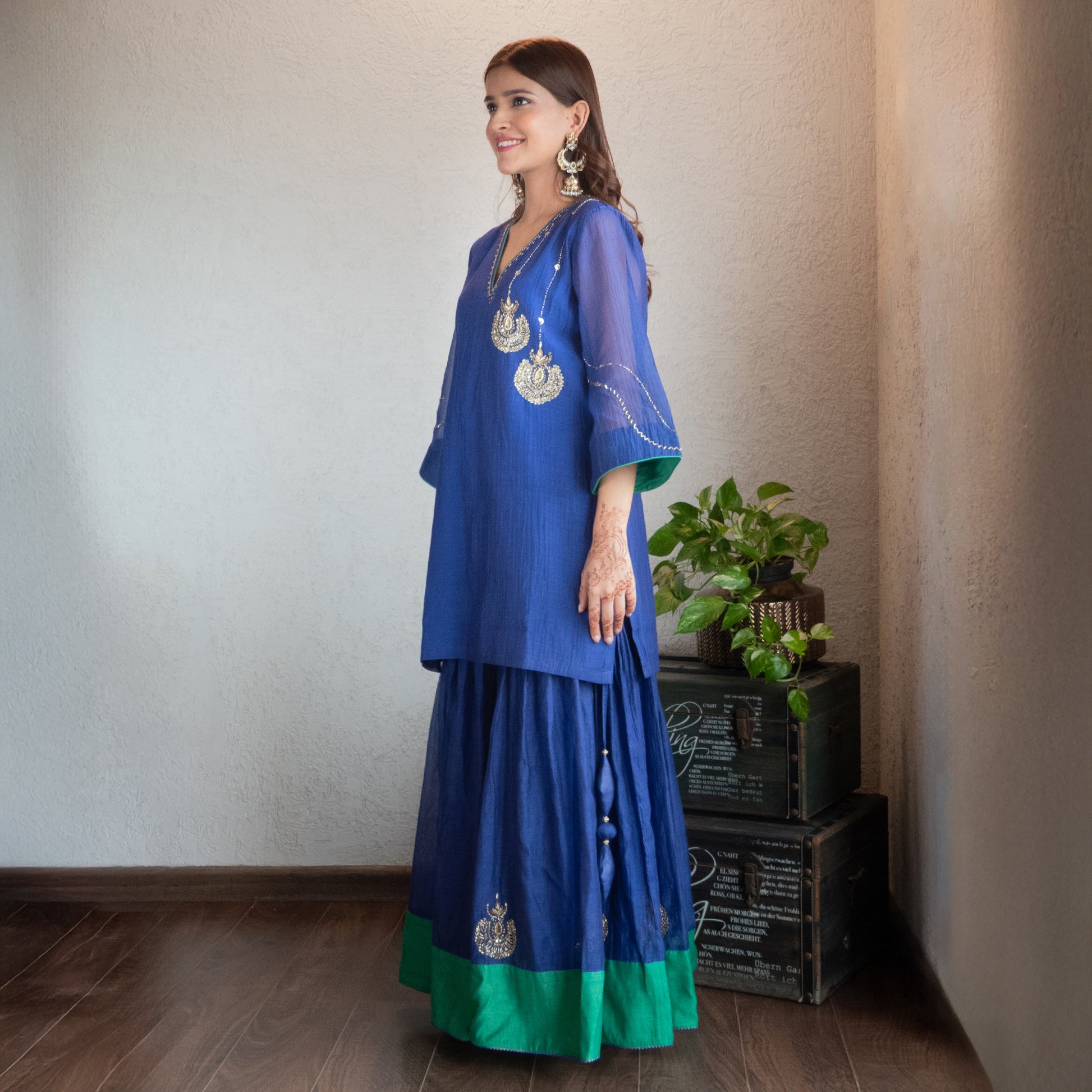 Blue Chanderi Sharara Set with Hand embroidered Moitfs