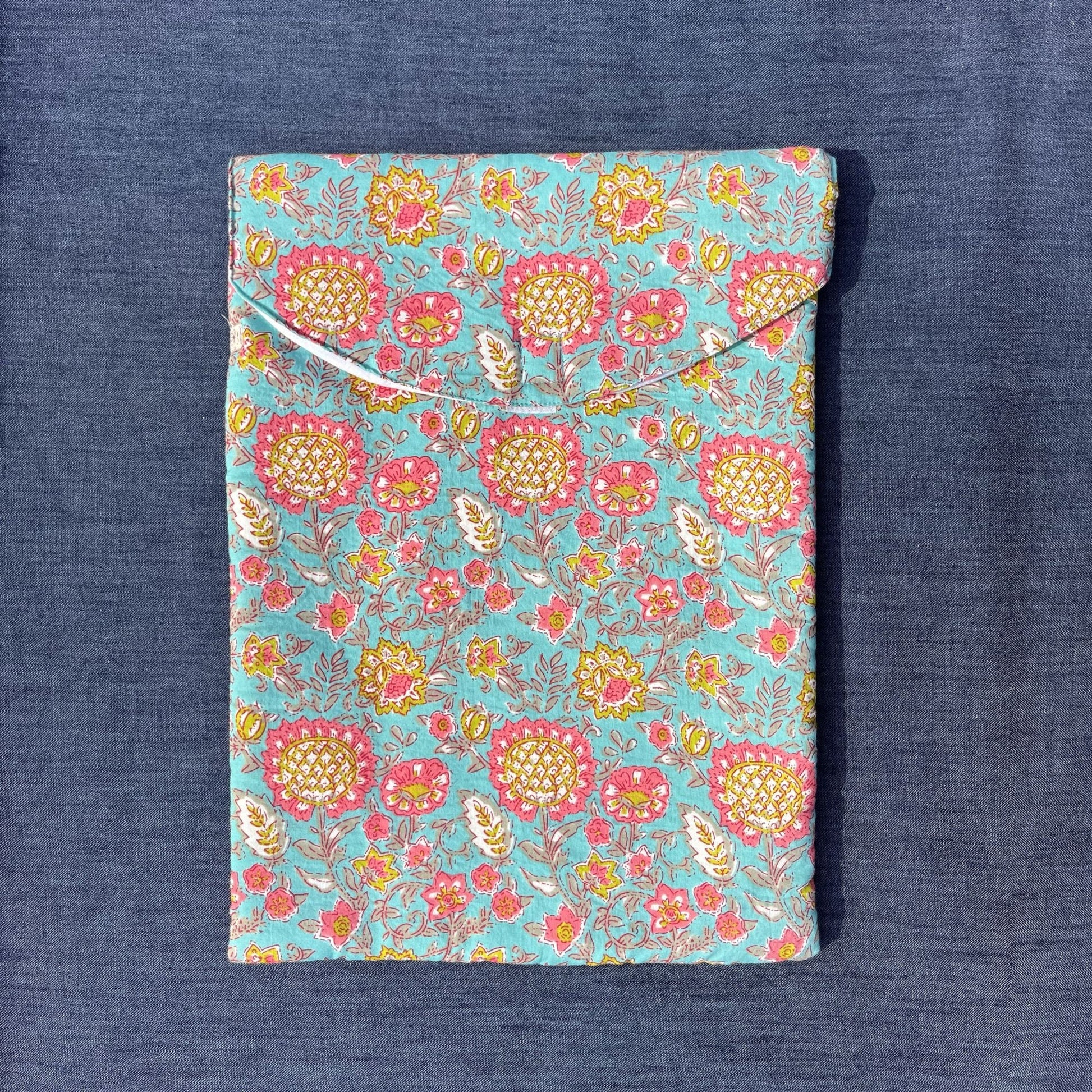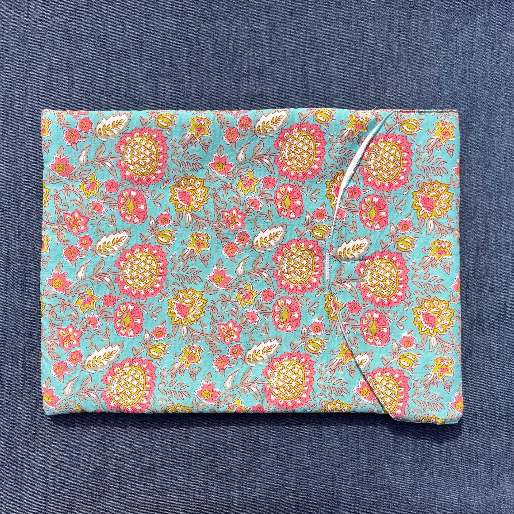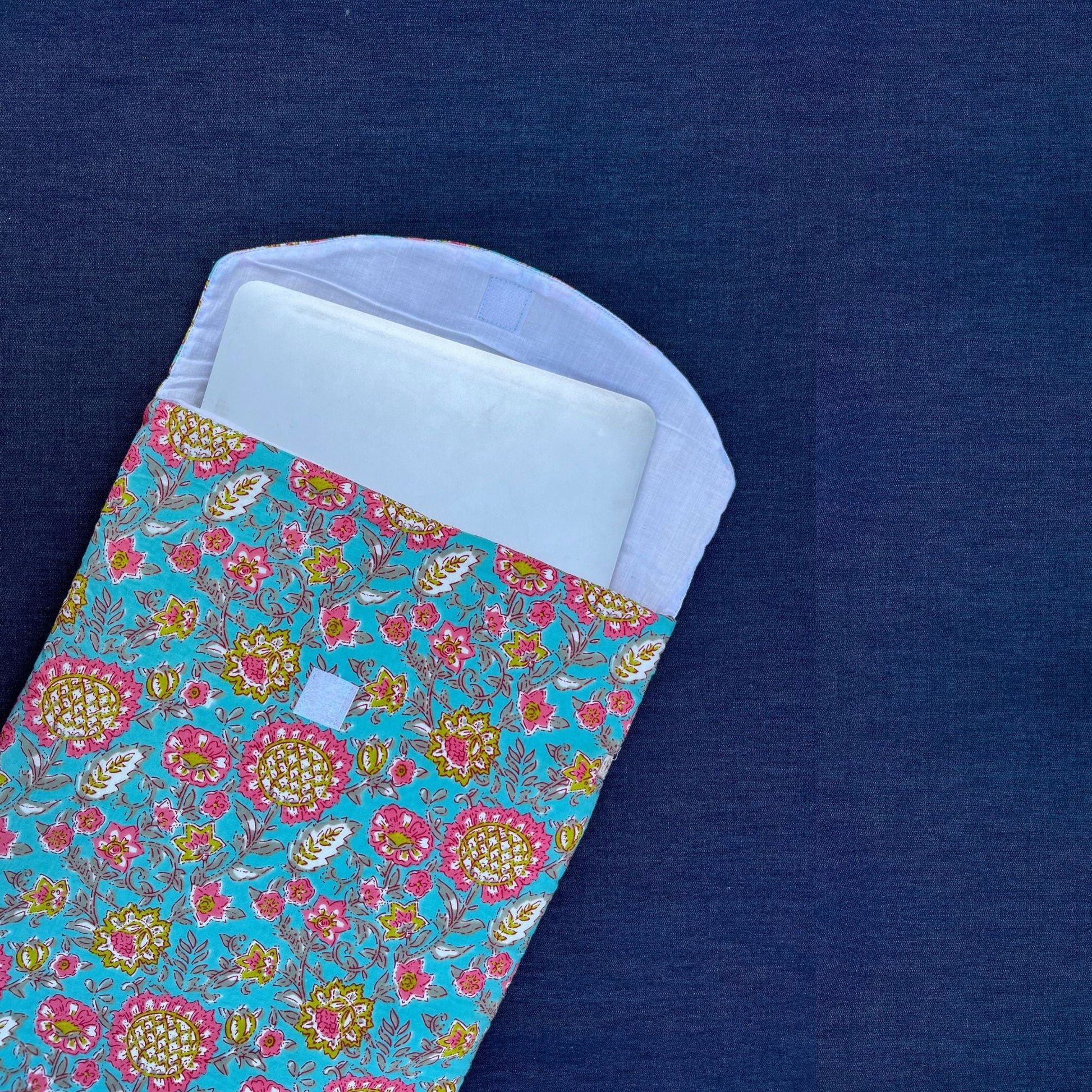 Blue printed laptop sleeve to shield your laptop and tablets from scratches and bumps with our eco-conscious range made from pure cotton fabrics seamlessly blending style and sustainability