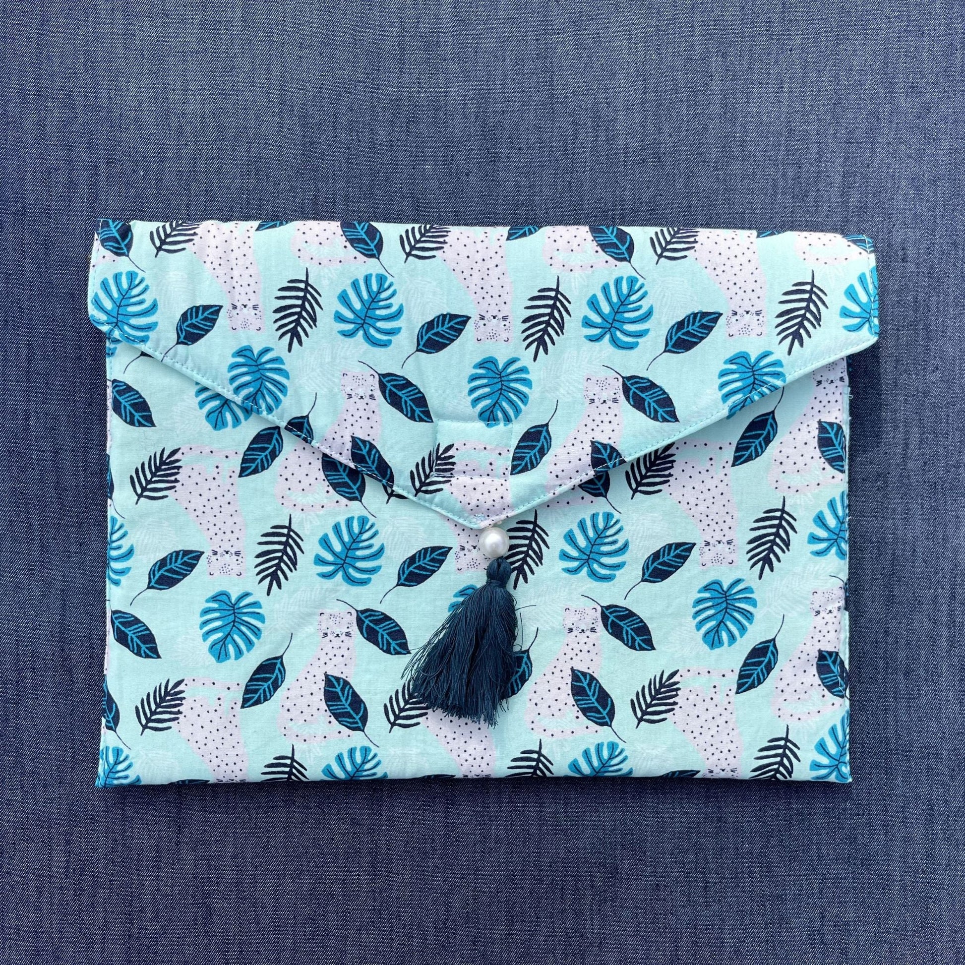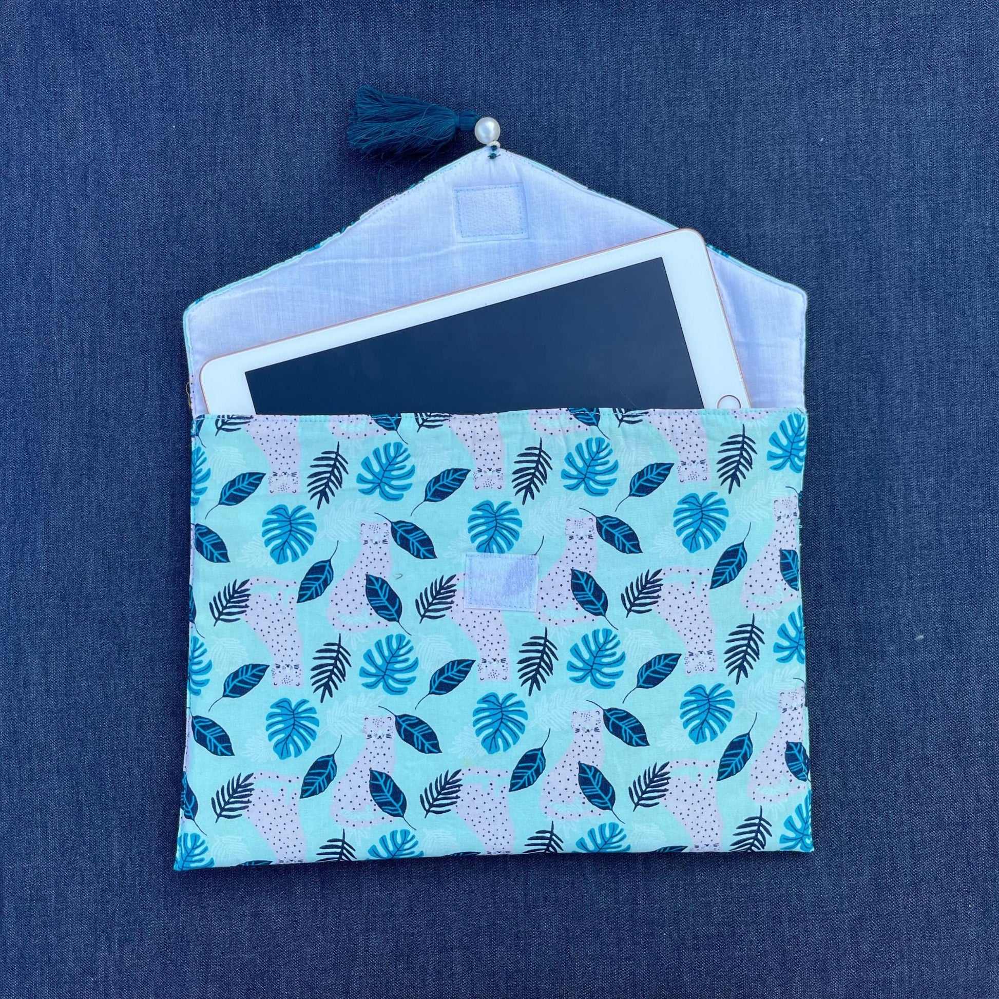 Blue printed IPad sleeve to shield your tablets from scratches and bumps with our eco-conscious range made from pure cotton fabrics seamlessly blending style and sustainability