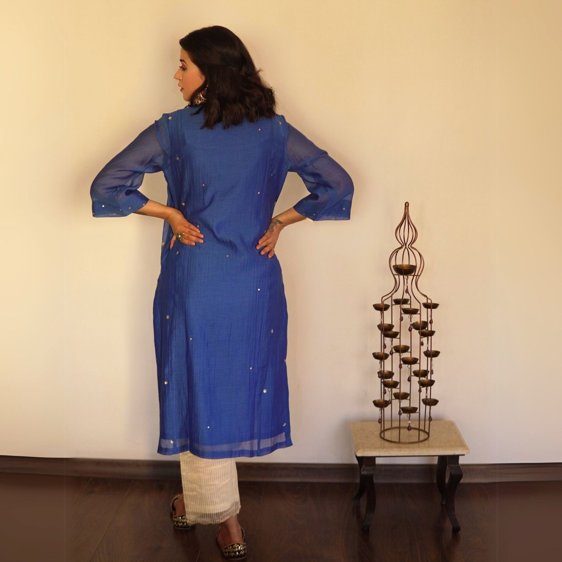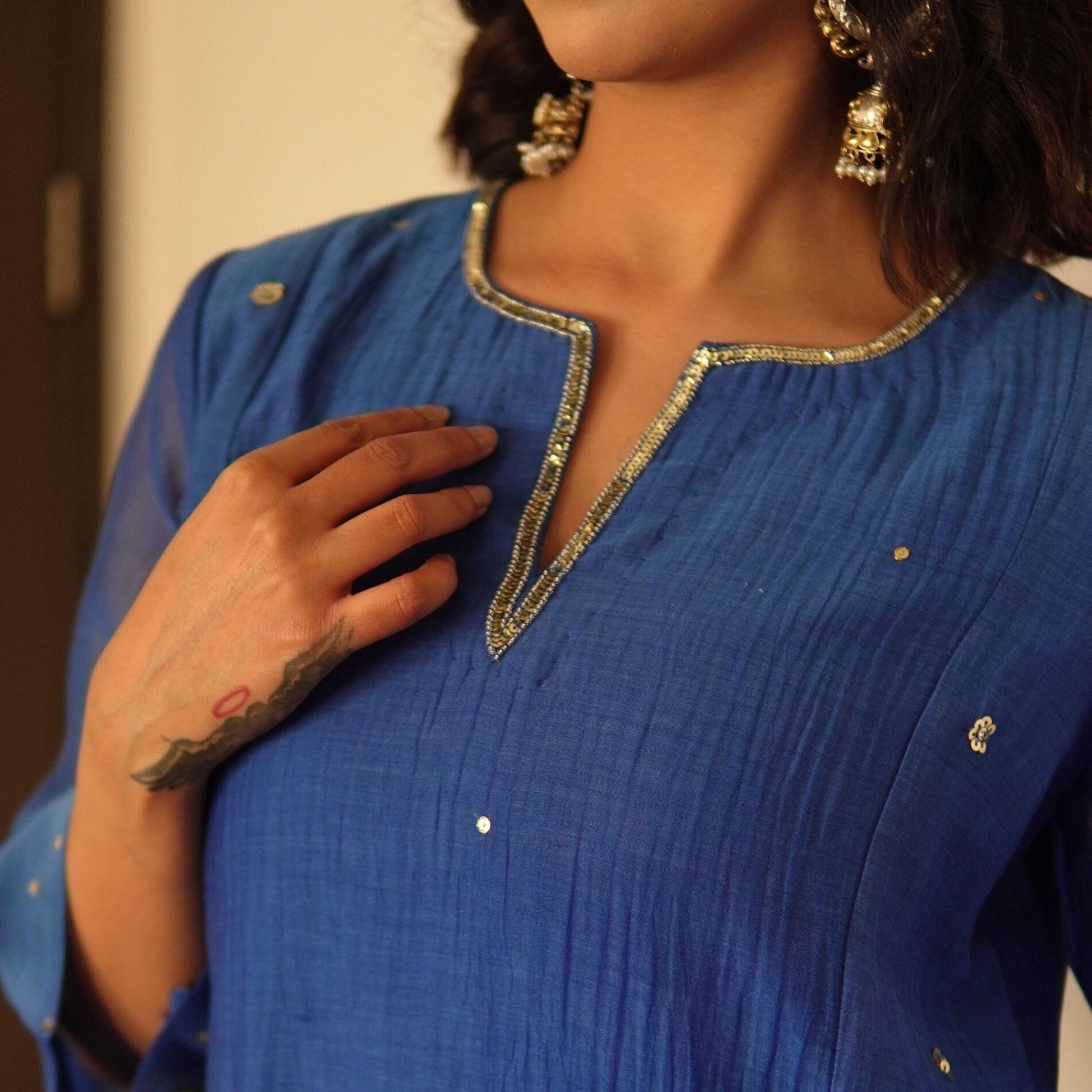 Blue Sequin-Embellished Chanderi Kurta set