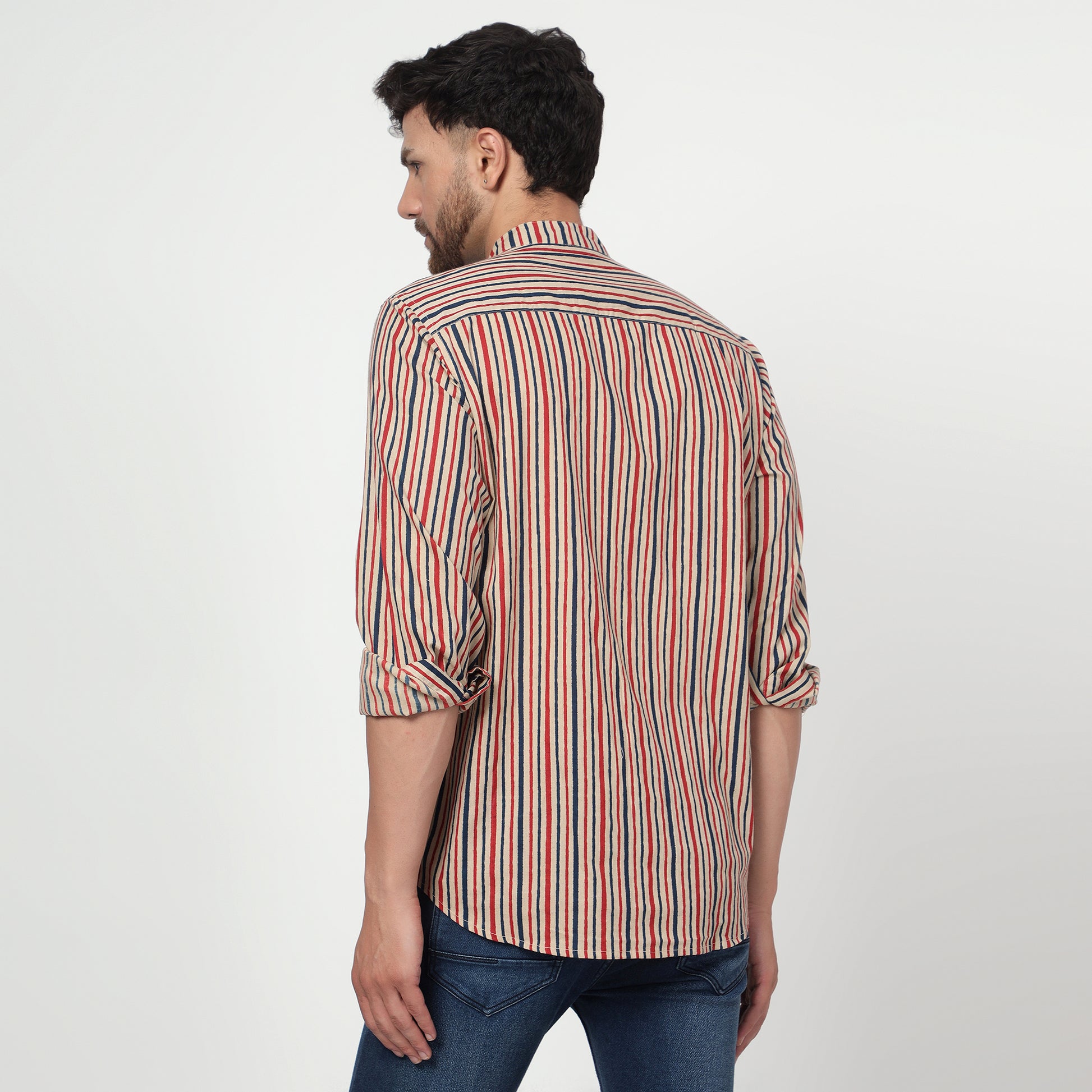 Beige Printed pure cotton Full-sleeves regular band collar shirt in comfort fit. This comfortable yet stylish shirt is perfect for lazy weekend brunches or relaxed evenings.