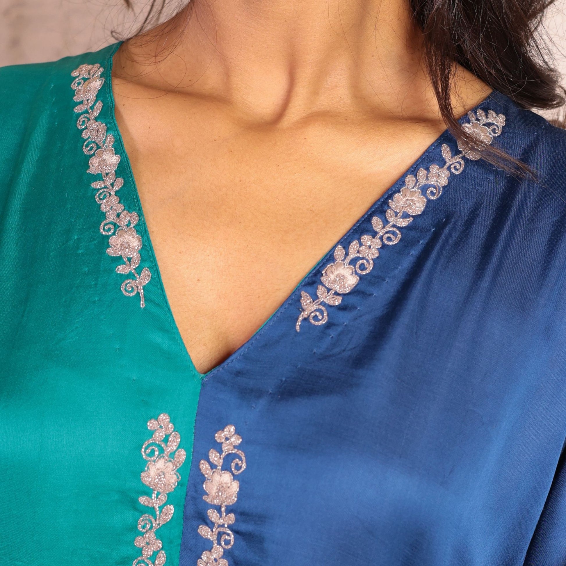 Half & half Modal silk asymmetric kurta set with dori work embroidery