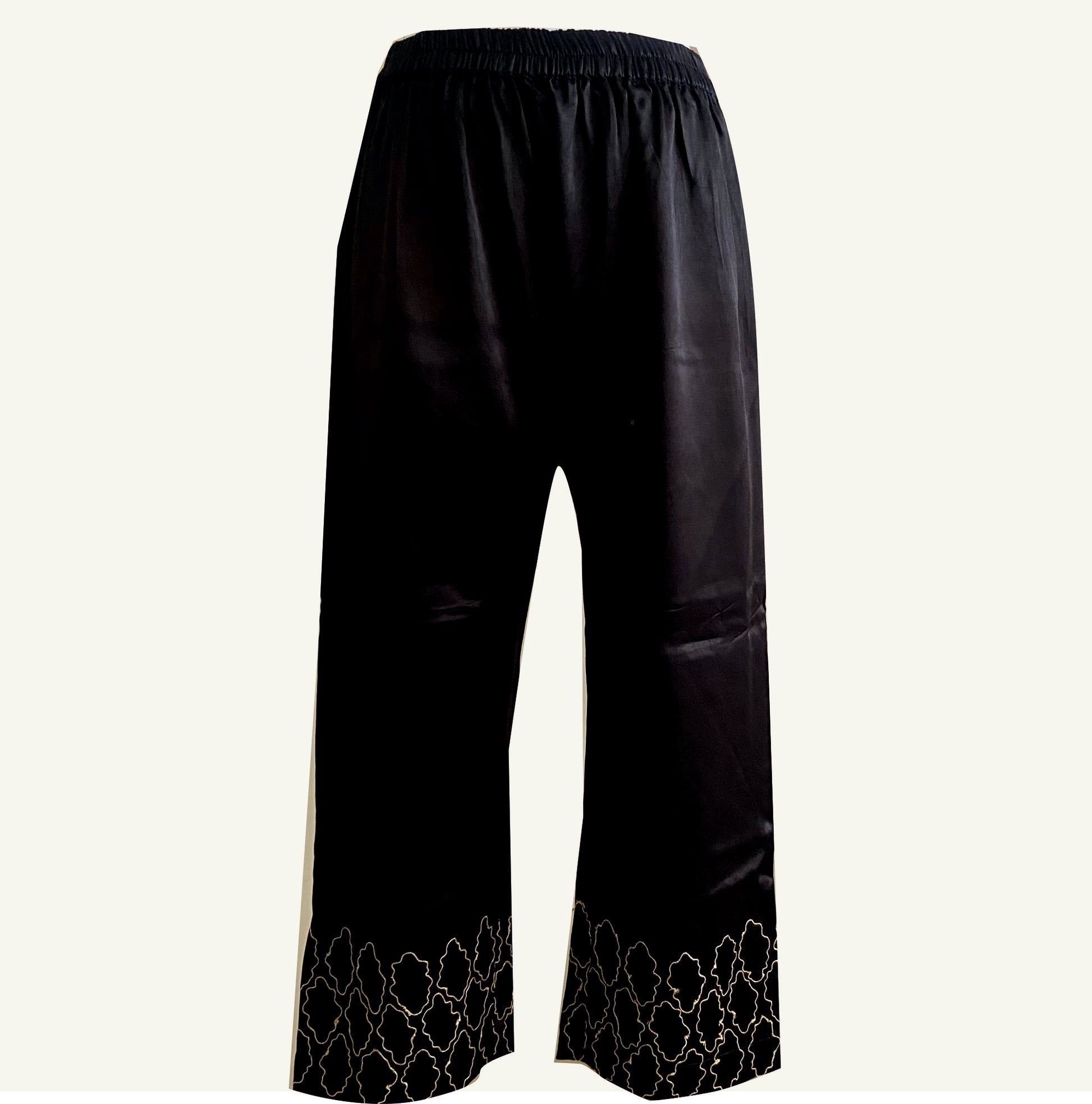 Mashru Silk pants with gold dori embroidery. A classic pant which pairs well with your velvet & silk kurtas.