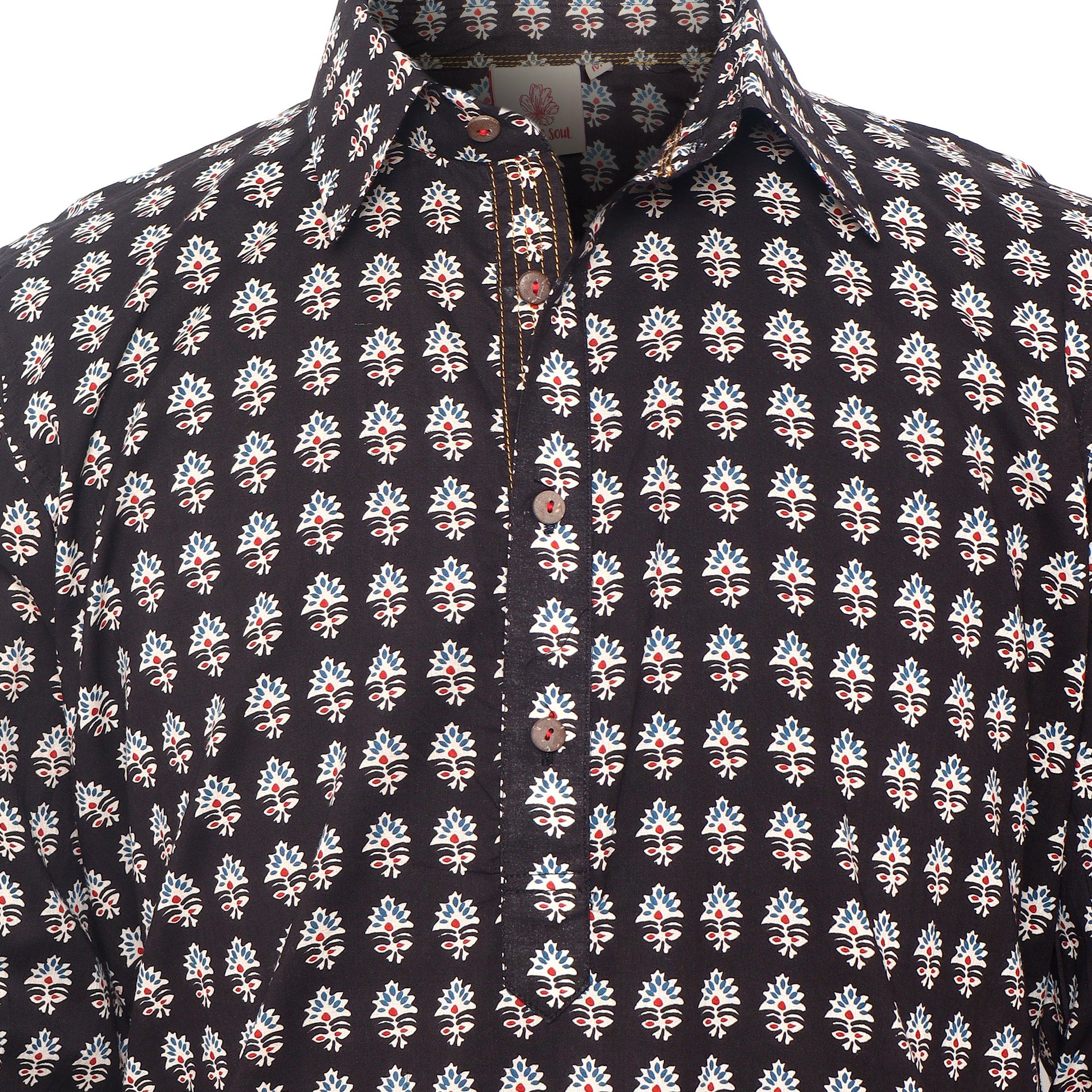 Block printed pure cotton full-sleeves band collar kurta in comfort fit. These comfortable yet stylish kurtas are perfect for casual festive & relaxed evenings. They can be paired with jeans or straight pyjamas.