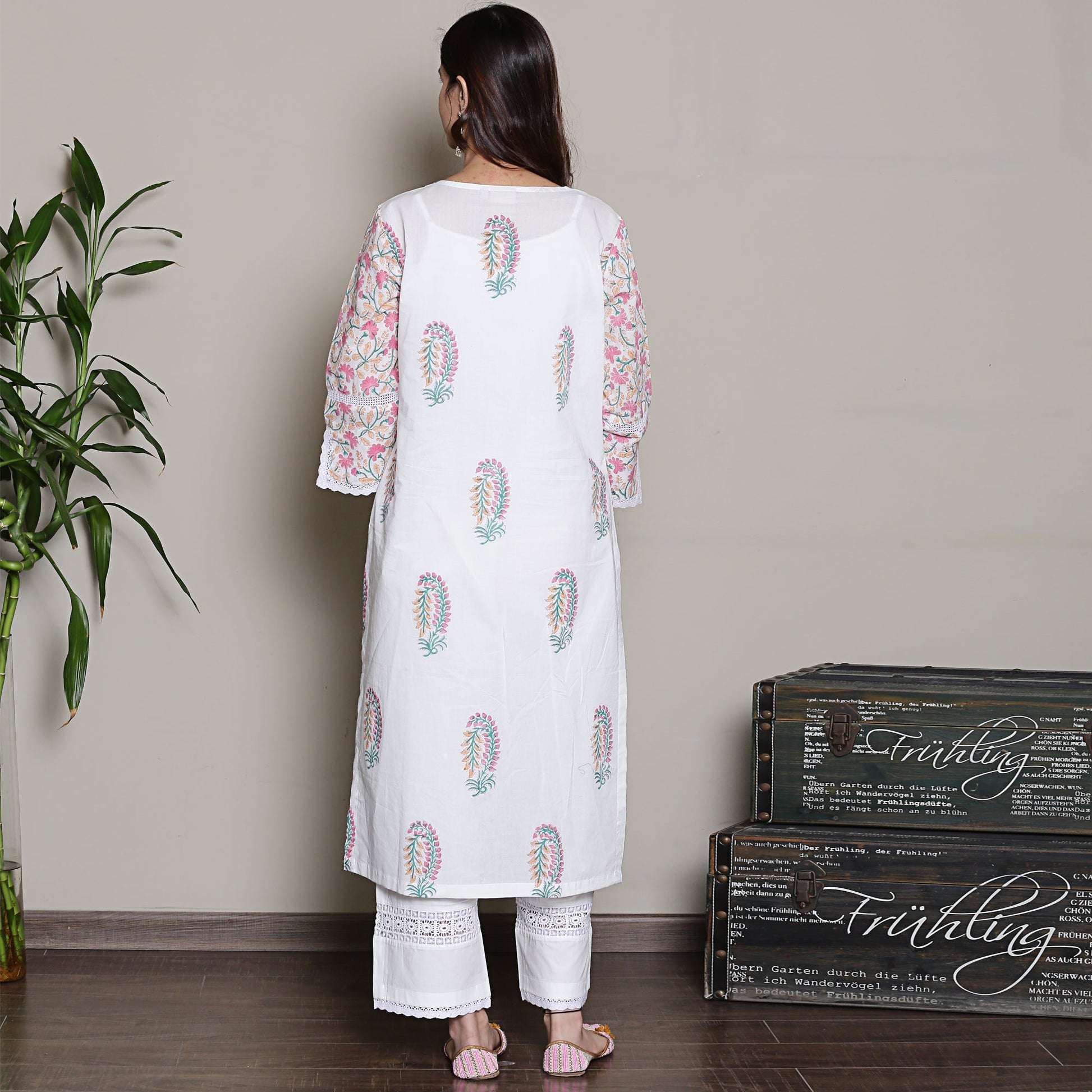 Mix-n-Match White-Pink Mughal Print Kurta Set