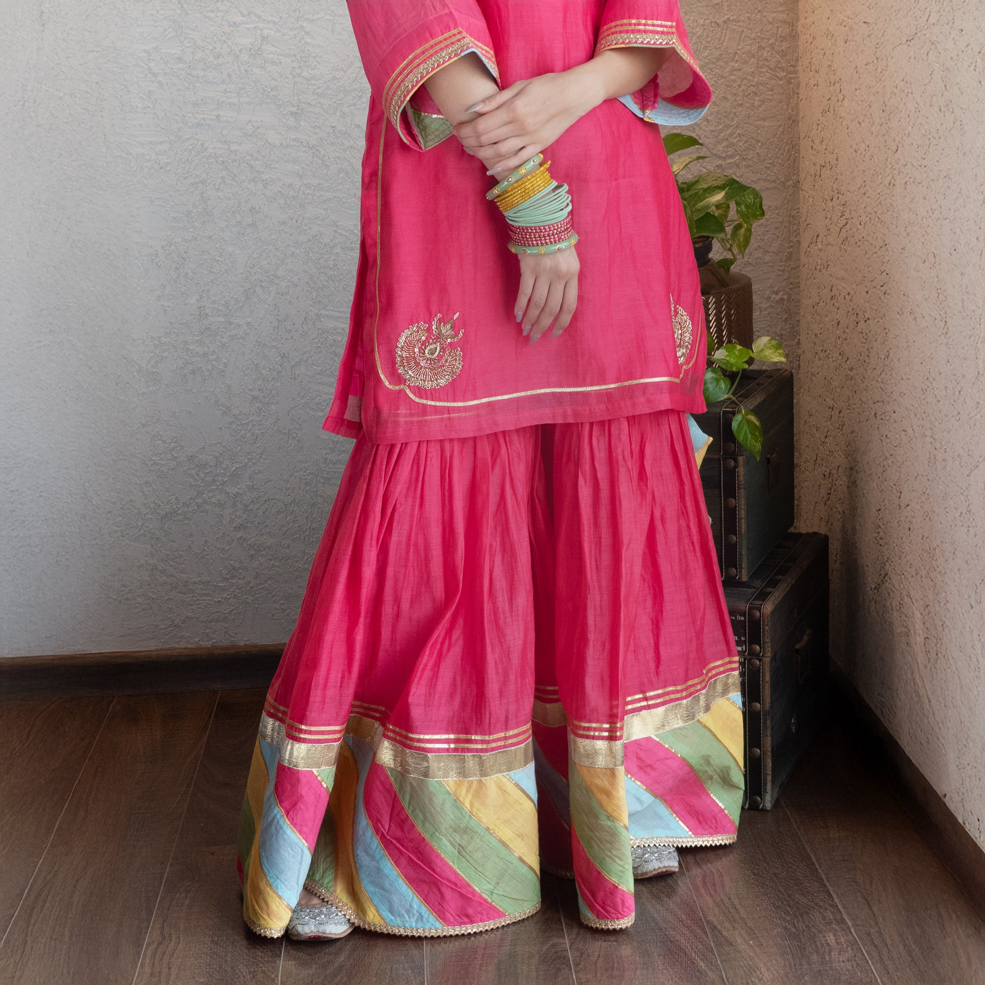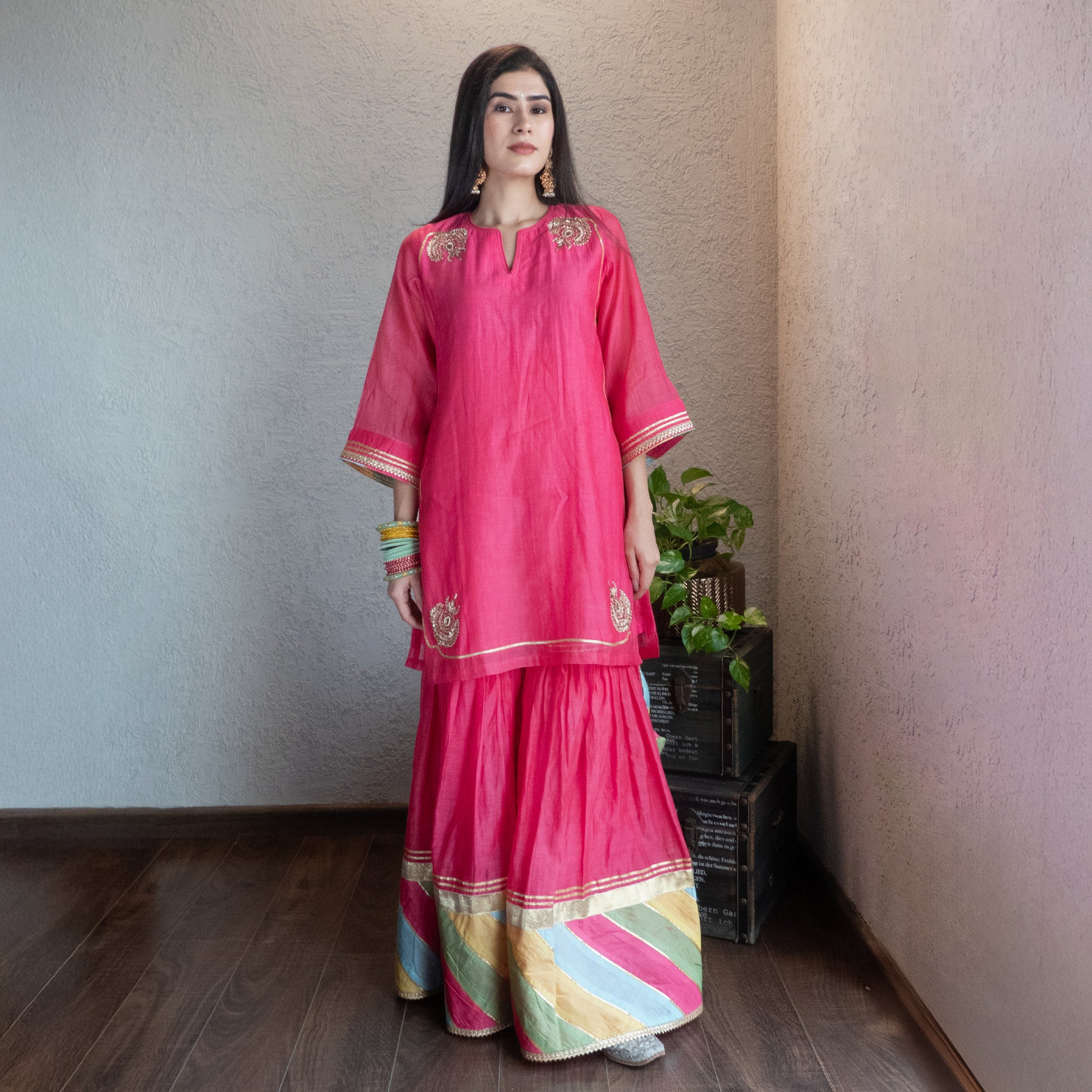 Pink Chanderi Sharara Set