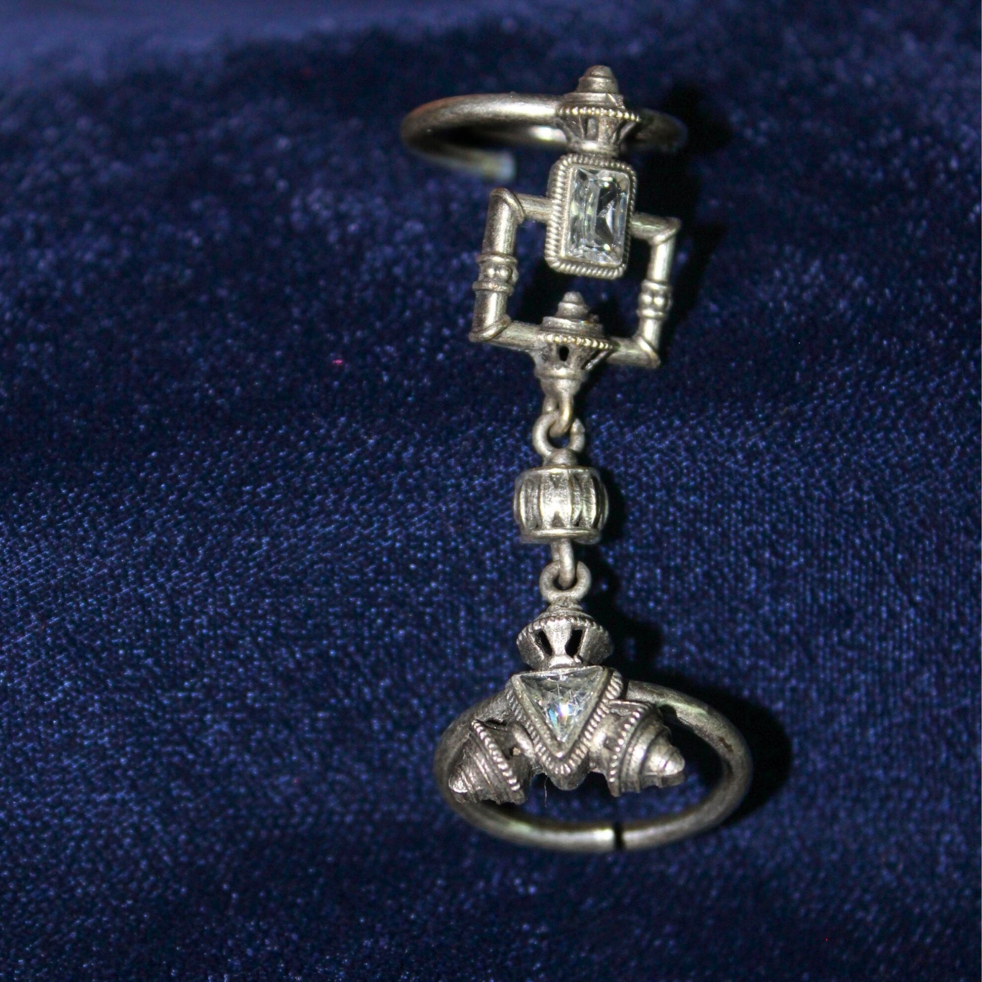 This celestial-inspired ring features a delicate chain and a captivating pendant adorned with sparkling stones. The adjustable closure ensures a comfortable fit for any finger. Pair it with a simple dress and heels for a touch of ethereal elegance, or layer it with other rings for a bohemian vibe.