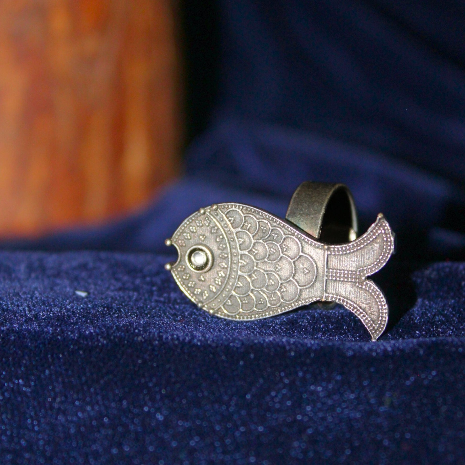 This whimsical ring features a playful fish design, adding a touch of aquatic charm to your look. The adjustable closure ensures a comfortable fit for all fingers. Pair it with a simple dress and sandals for a summery vibe, or layer it with other rings for a bohemian touch.