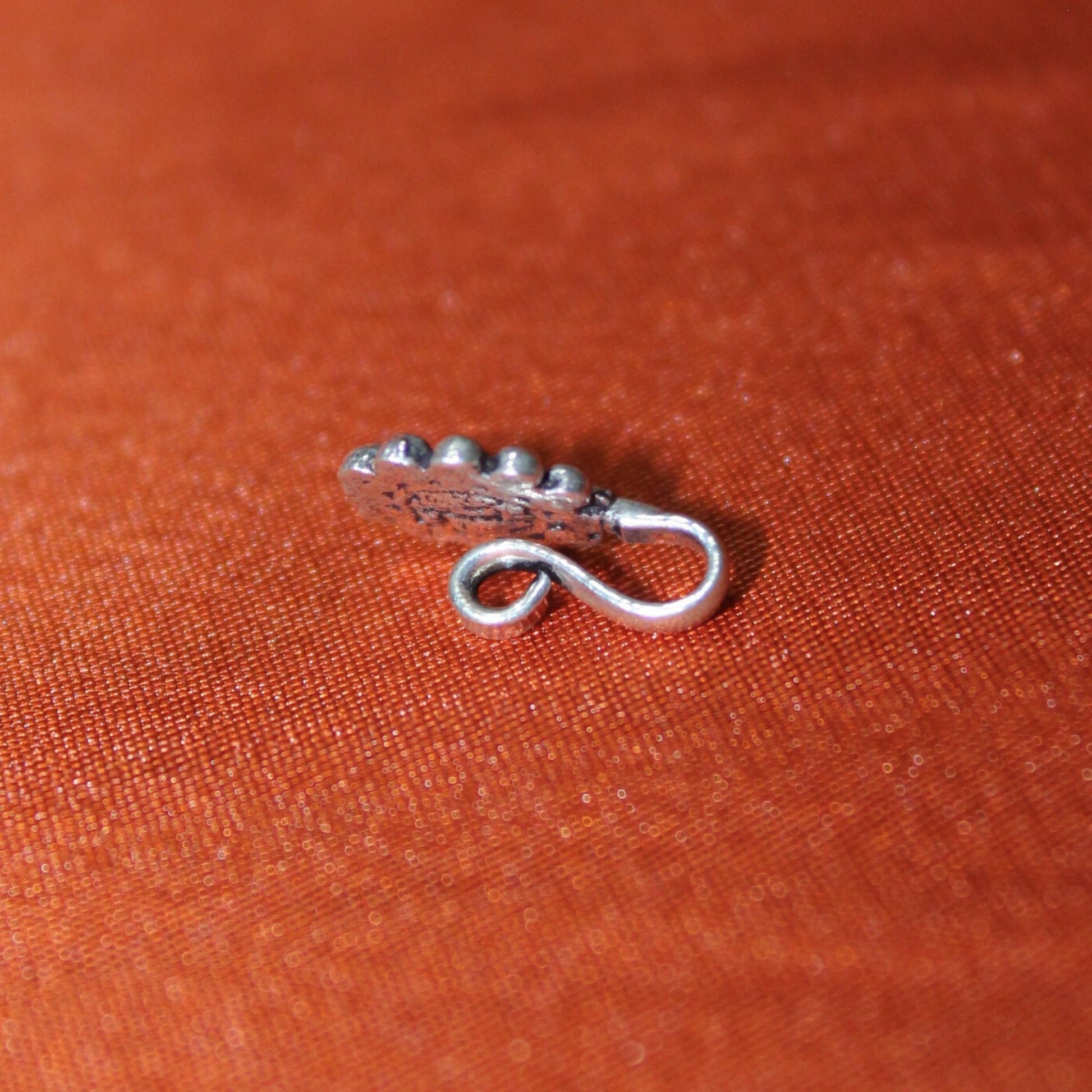 This exquisite nose pin features a delicate floral design with a captivating center stone. The slip-in closure ensures a secure and comfortable fit. This nose pin is perfect for adding a touch of elegance to both traditional and contemporary looks. Pair it with a saree or anarkali for a classic Indian look, or with a simple dress and heels for a touch of bohemian chic.