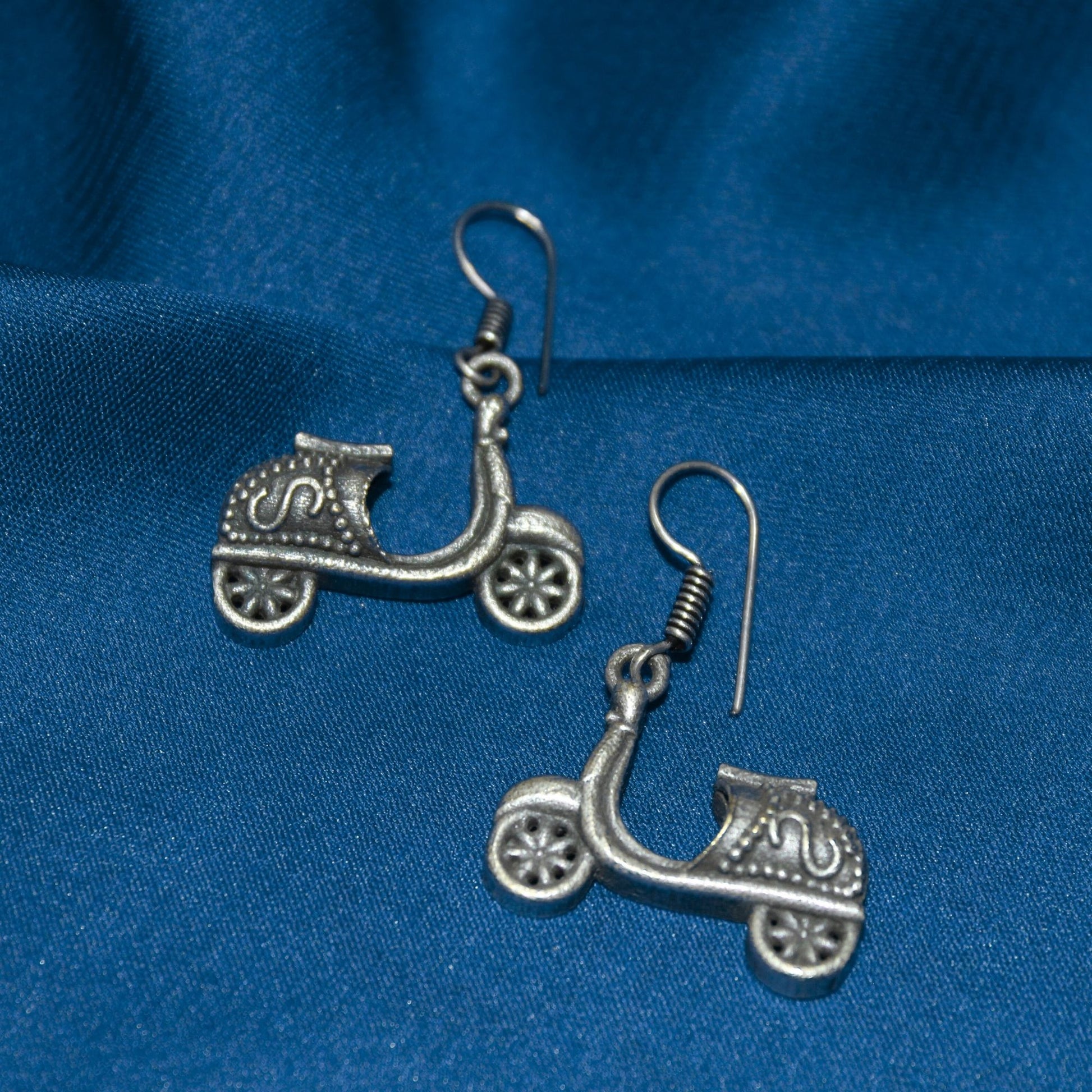Add a playful touch to your look with these silver scooter earrings. The intricate design and shimmering finish make them a versatile accessory that can be dressed up or down. These earrings feature a fishhook style for easy and comfortable wear. Pair with casual outfits for a touch of personality.