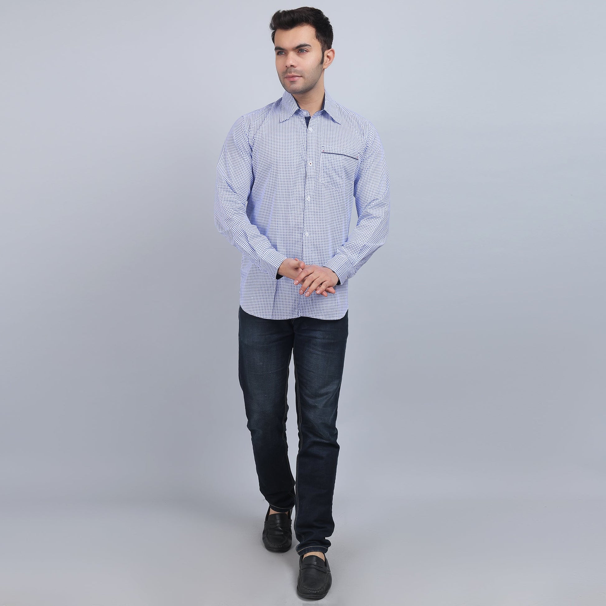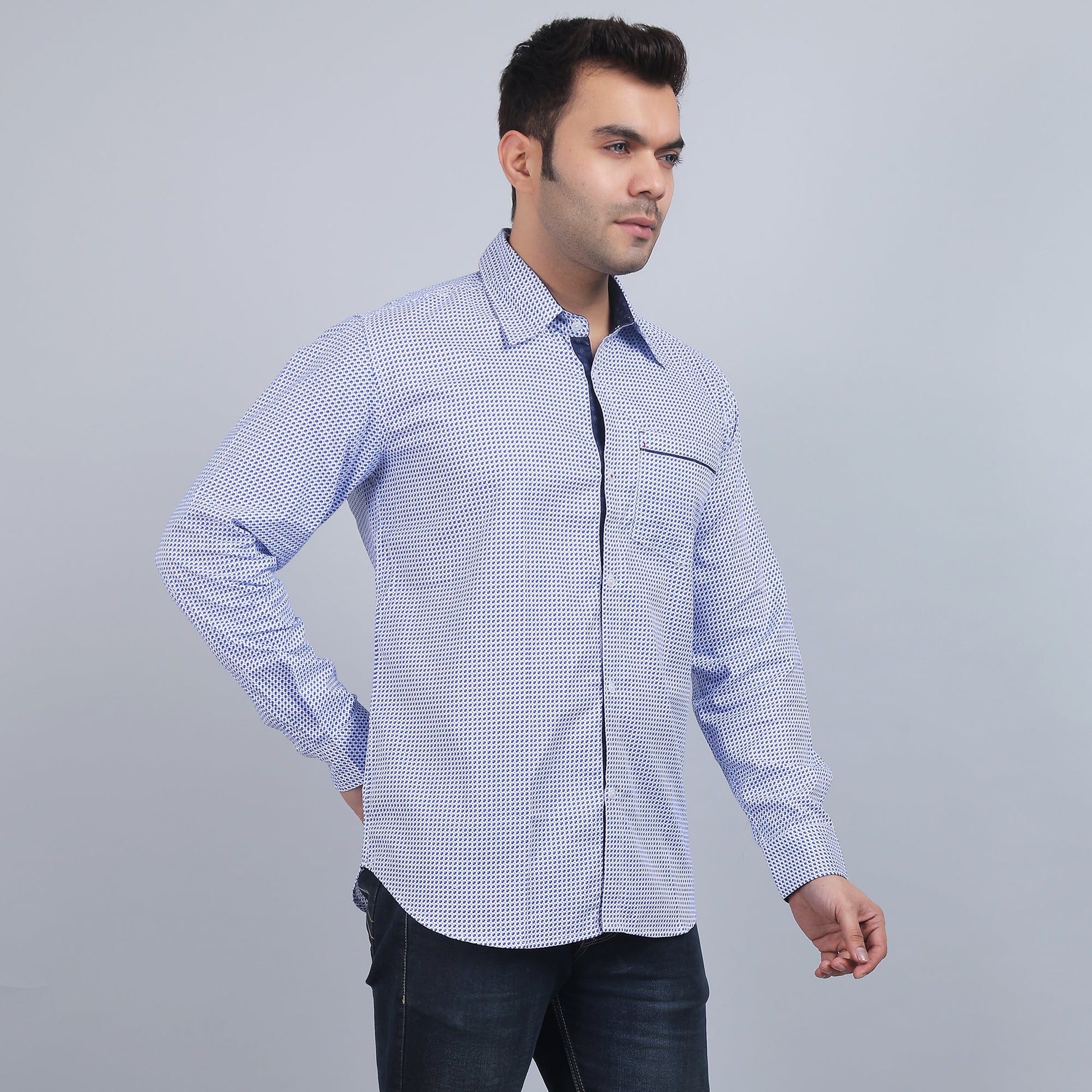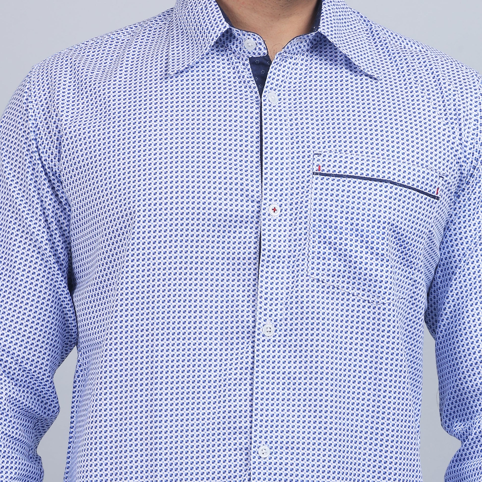 White Printed smart casual pure cotton Full-sleeves regular collar shirt in comfort fit.Ideal for social gatherings and for keeping comfort with a professional trendy appearance.